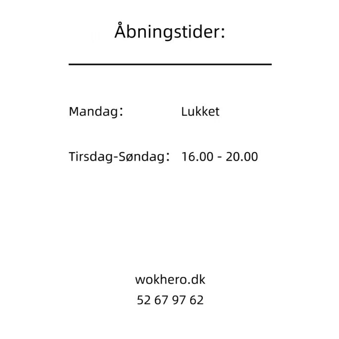 Vi er stadig nye og drives i øjeblikket kun af vores hovedkok. Når der er travlt, kan han have svært ved at tage telefonen – derfor anbefaler vi, at du bestiller online. Tak for din forståelse.